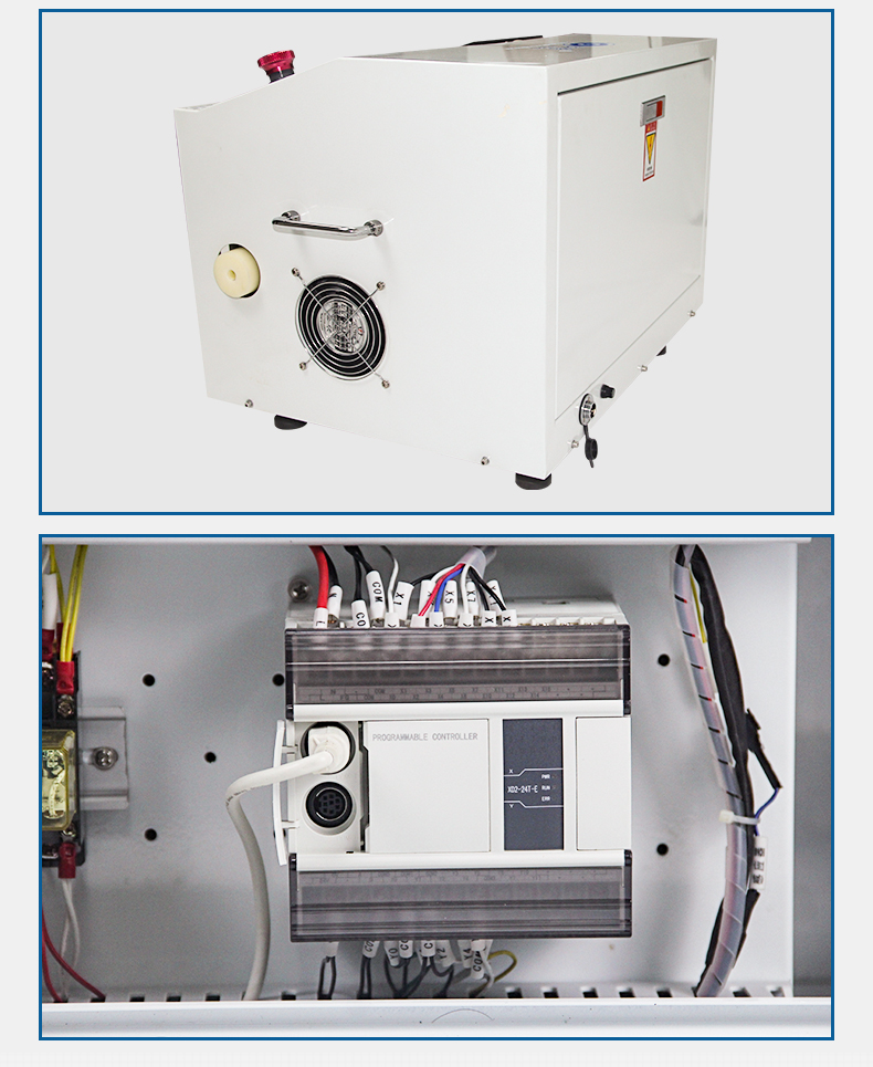 全電腦設(shè)定各種規(guī)格,進(jìn)退料的旋鈕開(kāi)關(guān),傳送皮帶上升下降旋鈕及刀片更換。